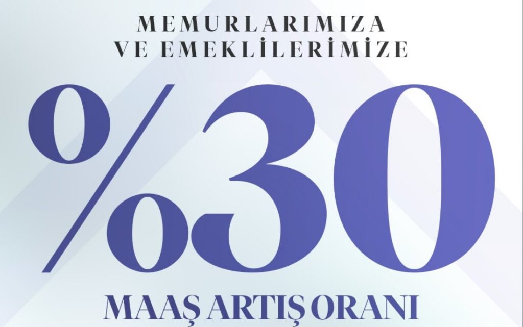 Cumhurbaşkanı Erdoğan, “Memurlarımıza ve tüm emeklilerimize 2023 yılı ocak ayı maaş artışlarının yüzde 30 olarak uygulanacağı müjdesini veriyoruz” dedi.