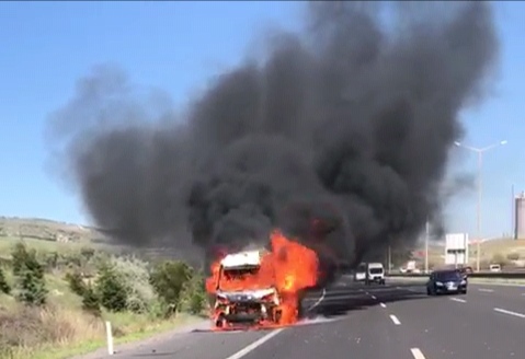 Son Dakika! Ankara Şehirlerarası Otoyolunda Servis Aracı Yandı