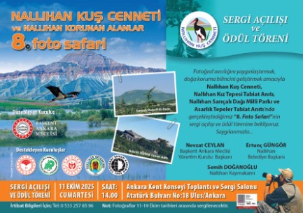 Nallıhan Kuş Cenneti ve Nallıhan Korunan Alanlar 8. Foto Safari yarı (11 Ekim Cumartesi) saat 14.00’te Ankara Kent Konseyi Sergi Salonu’nda açılıyor.