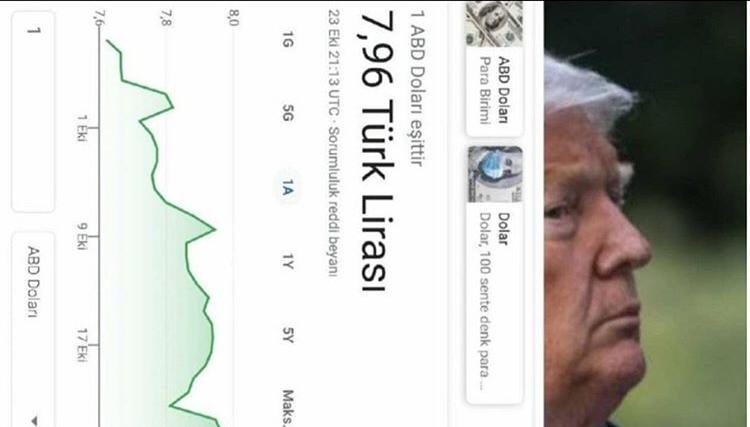 Doların son bir aylık grafiğini yan çevirip bakıldığı zaman Donald Trump’ın silüetinin ortaya çıkması sosyal medyada gündem oldu.
