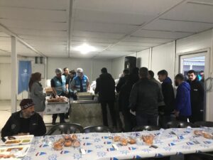 Traktörle yemek dağıtıldığından haberdar değilmiş. İhtiyarı araca aldım, öğretmenlerin konuşlandıkları yere götürdüm. Saat 15.00 civarıydı. Yağmur dinmiş, güneş yüzünü göstermişti. Sağlıkevine vardığımızda mutfak gönüllüleri bir masa etrafında sıralanmış, o gün ne pişirmişlerse onu yiyorlardı.