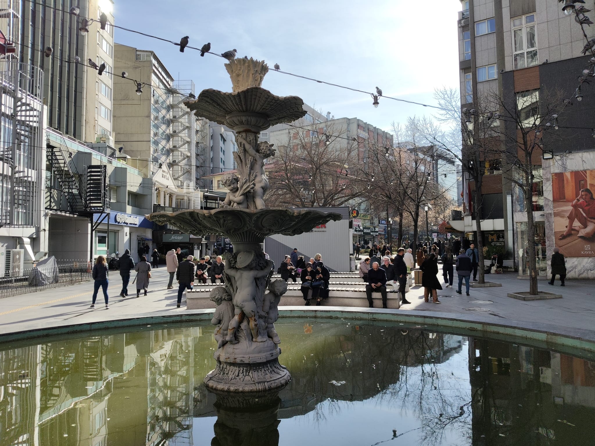 Havalar iyiyse, kar veya yağmur yoksa Su Perisi Havuzu’nun yakınındaki ahşap oturaklar ve çevredeki banklar erkenden doluyor. Cadde iki yönlü yeni düzenlendi. Ama güzel olmadı. Peyzaj başta, oturakların biçimi ve konumları hoş değil. İzmir2 berbat durumda.