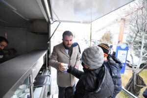 dileyen Pursaklar Belediye Başkanı Ertuğrul Çetin, vatandaşlara çorba ikram ederek
