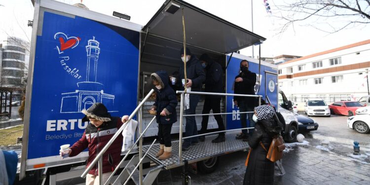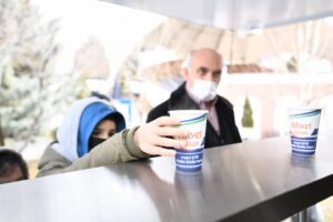 gelen vatandaşlara çorba dağıtımı gerçekleştiriyor.
