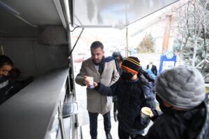 Soğuk kış günlerinde festival alanına gelen vatandaşlara çorba ikram ederek içlerini