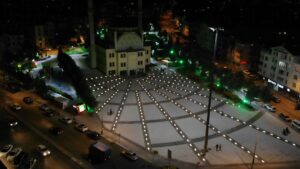 Dış mekânda kullanıma uygun 4 çeşit taşın kullanıldığı Hicret Cami meydanında ise, havanın kararması ile birlikte faaliyete geçen gömme aydınlatma armatürlerin oluşturduğu görsel şölen seyir zevki verirken, yeni meydanın resmi törenlere ev sahipliği yapması, dinlenme alanları ve vatandaşların rahatlıkla dolaşıp vakit geçirebileceği yeşil alanlar bulunuyor.
