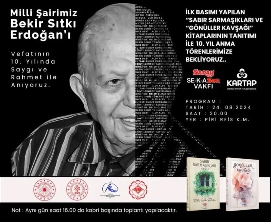 Bekir Sıtkı Erdoğan, geçen yıl vefatının 10. yılı münasebetiyle Karaman’da rahmetle anıldı ve edebiyat dünyamıza bir güzel haber duyuruldu. Şairimizin “Sabır Sarmaşıkları” ve “Gönüller Kavşağı” isimli iki eseri ilk kez basıldı.