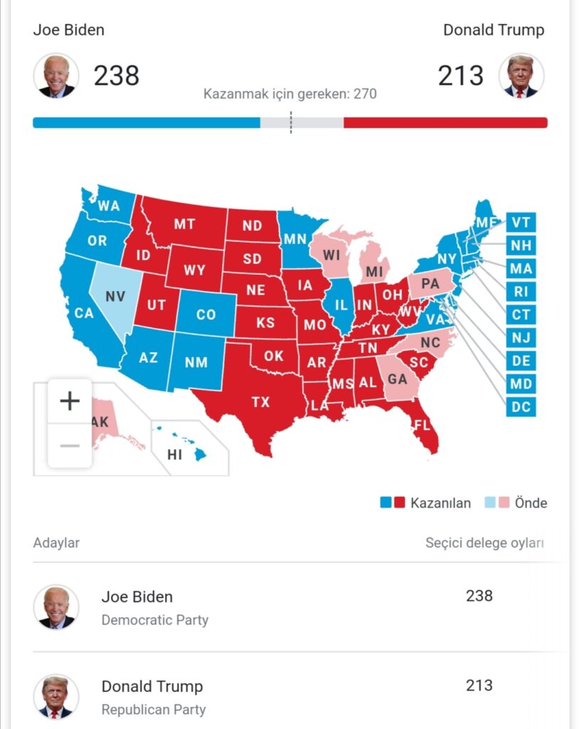 Şuana kadar açıklanan rakamlarda Joe Biden önde gidiyor.