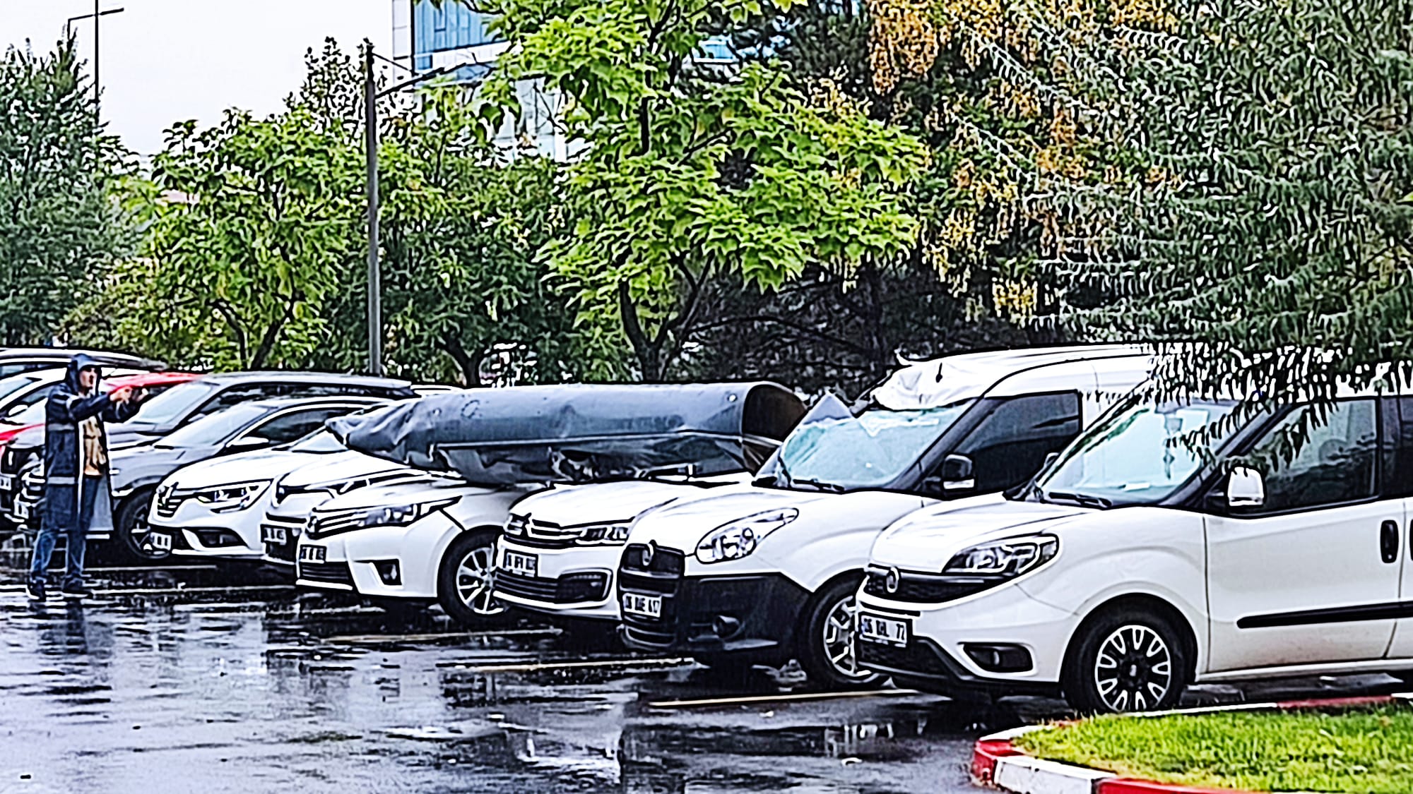 Bölgeye itfaiye ekipleri sevk edildi. alanda araçlar park halinde olduğundan dolayı, düşen parçanın sebebiyle bilinene göre 3 araç hasar aldı. Can kaybı ve yaralı bulunmamaktadır.