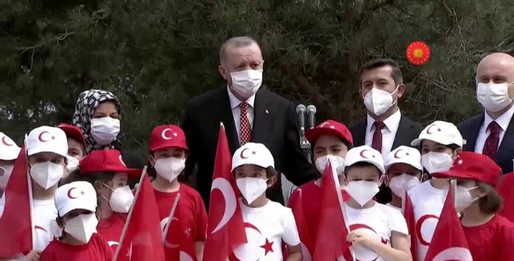23 nisan Ulusal Egemenlik Ve Çocuk Bayramına ithafen açılışı bugün gerçekleştirilen Türkiye’nin yeni en büyük bayrak direğine ilk bayrağın çekilmesi için Cumhurbaşkanı Erdoğan ve çocuklar bizzat düğmeye bastı ve bayrak çekme töreni gerçekleştirildi.