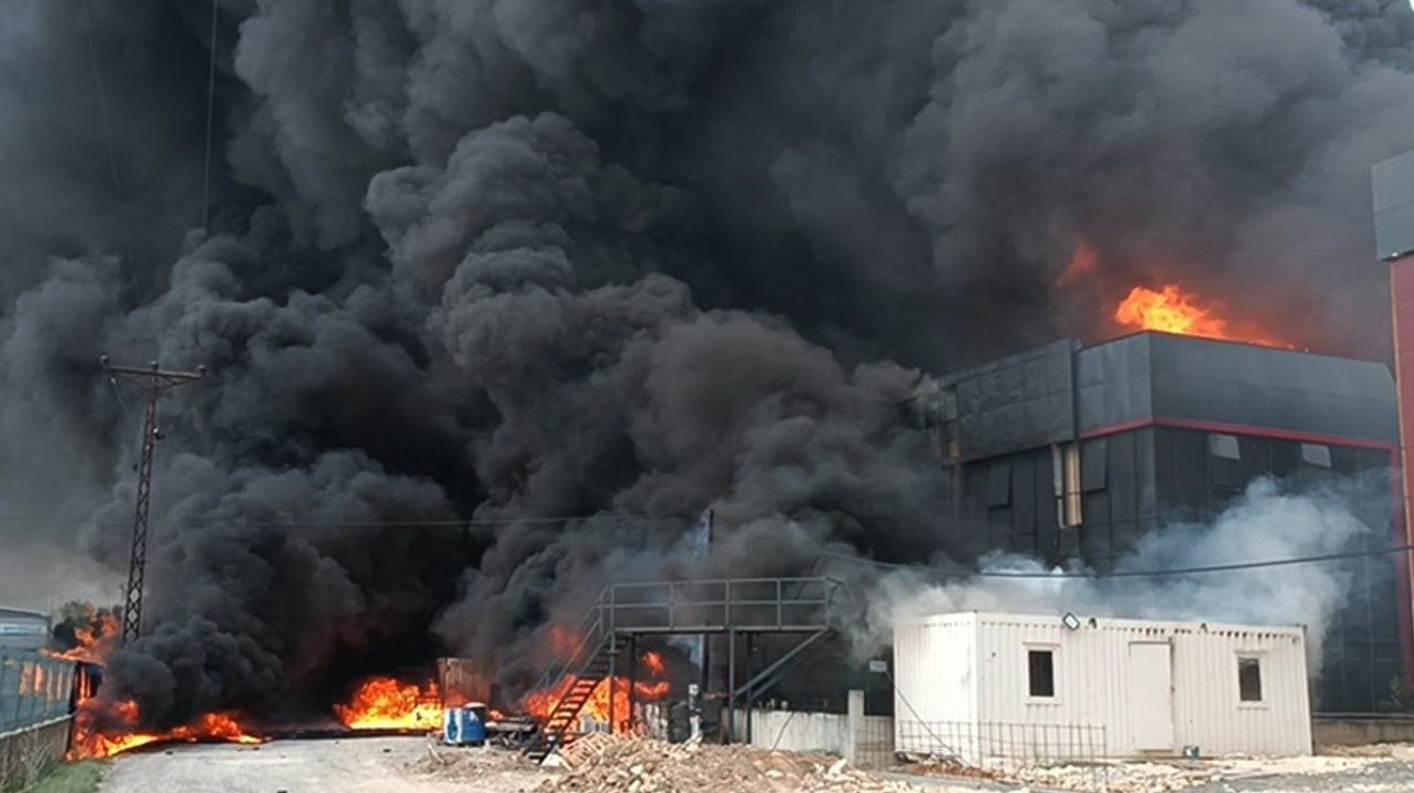 Yangının çıktığı fabrikada çoğunlukla kimyasal ürünlerin bulunmasından ötürü gökyüzü yoğun kara dumanla kaplandı.