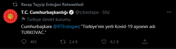 Yerli Covid-19 aşısının Faz-3 çalışması kapsamında gönüllülerle yürütülen aşılama programı, Cumhurbaşkanı Erdoğan’ın video konferans katılımıyla Ankara Şehir Hastanesi’nde başladı. Yerli Kovid-19 aşısının adının “TURKOVAC” olacağı açıklandı.