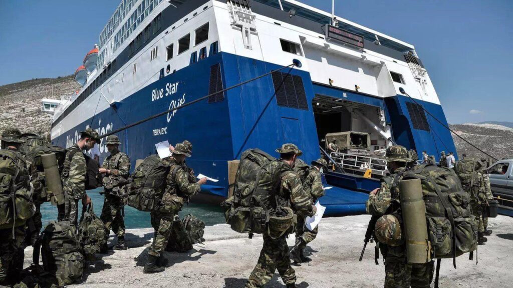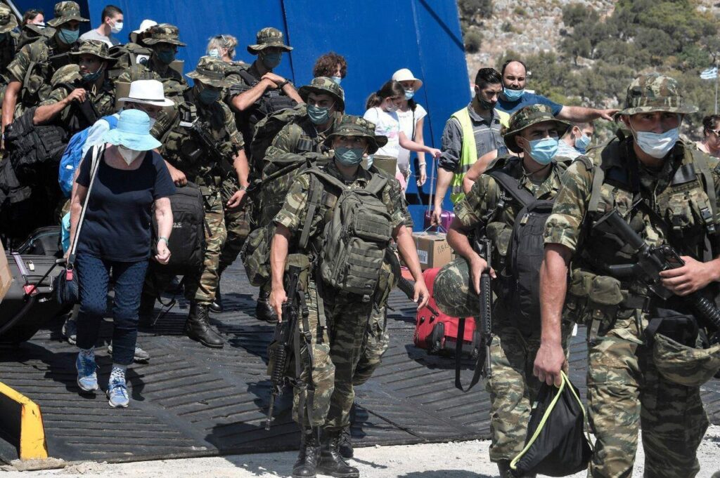 AFP tarafından servis edilen görüntülere göre Yunanistan, Türkiye kıyılarının 2 km açığında bulunan ve silahlandırılması yasak olan Kızılhisar (Meis) Adası’na turist feribotlarıyla asker konuşlandırdı.